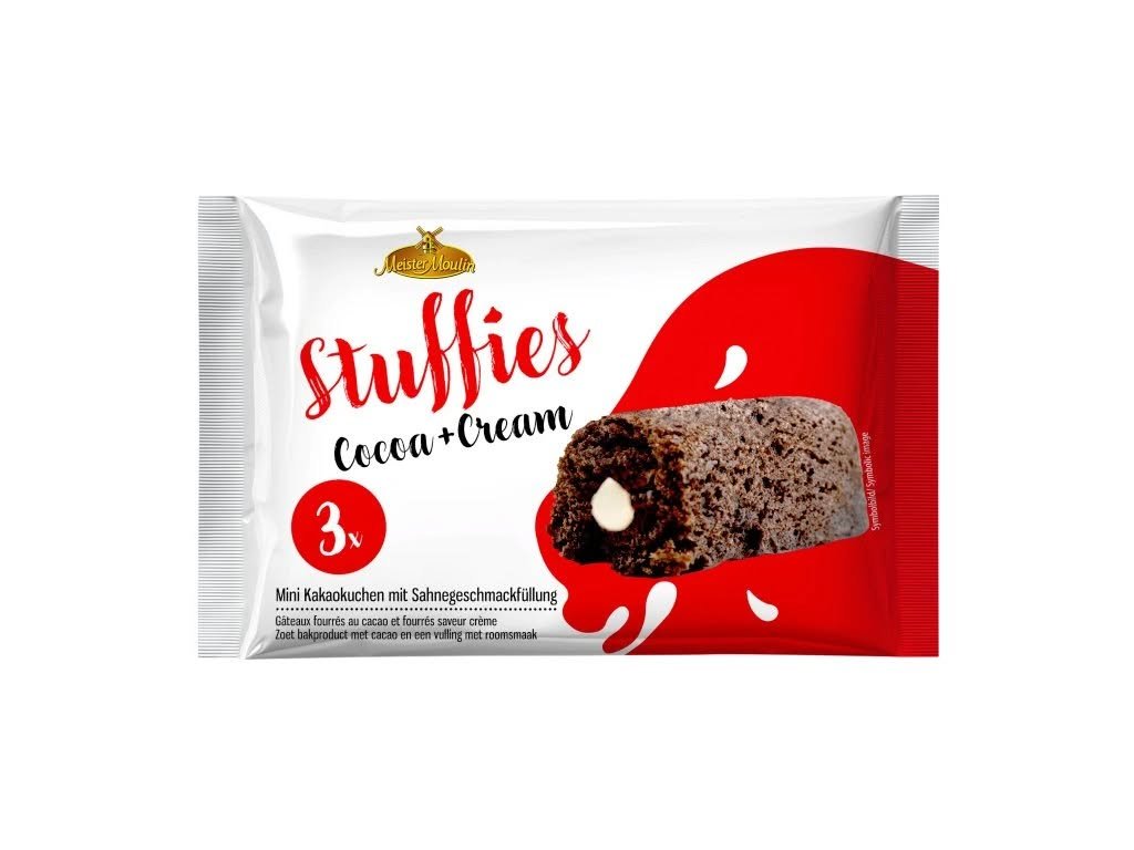 Chcete si osladit den? Mini dortíky Meister Moulin Stuffies s kakaovým těstem a krémovou náplní jsou ideální volbou. Balení obsahuje 3 kusy po 45 g, vhodné na cesty, do školy i do práce. Německá kvalita, výrazná kakaová chuť, jemný smetanový krém. Samostatně balené, vláčné a lahodné. Skvělé i pro děti.