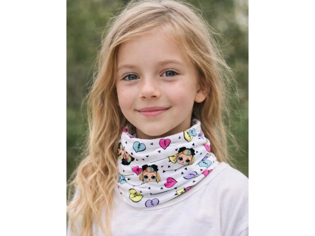 Nádherný multifunkční nákrčník LOL, velmi jemný, jednovrstvý, určený pro období jaro, léto i podzim. Má široké možnosti využití - nejen jako nákrčník, ale i čelenka, pirátský šátek, kukla, pro úpravu vlasů do culíku..... Materiál je příjemně pružný a lehký.