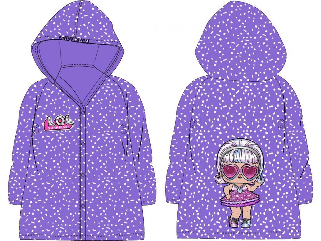 Panenka L.O.L. je velká parádnice, a proto ví, jak důležitá je pláštěnka pro holky. Aby krása nezmokla, doporučuje v dešti nosit dívčí pláštěnku, která je poddajná a měkkoučká a přitom pevná, v podpaží je odvětrávání, zapínání má na druky. Dětská pláštěnka má krásnou fialovou barvu a kvalitní motiv s krásnou LOL panenkou.