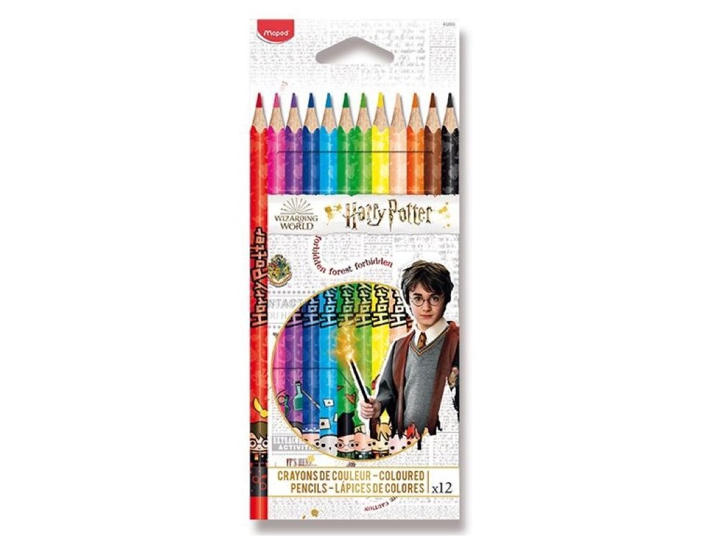 Souprava 12 kusů pastelek s atraktivními motivy Harryho Pottera. Ergonomické pastelky Maped Color'Peps mají trojhranné tělo, měkkou odolnou tuhu a jasné barvy.