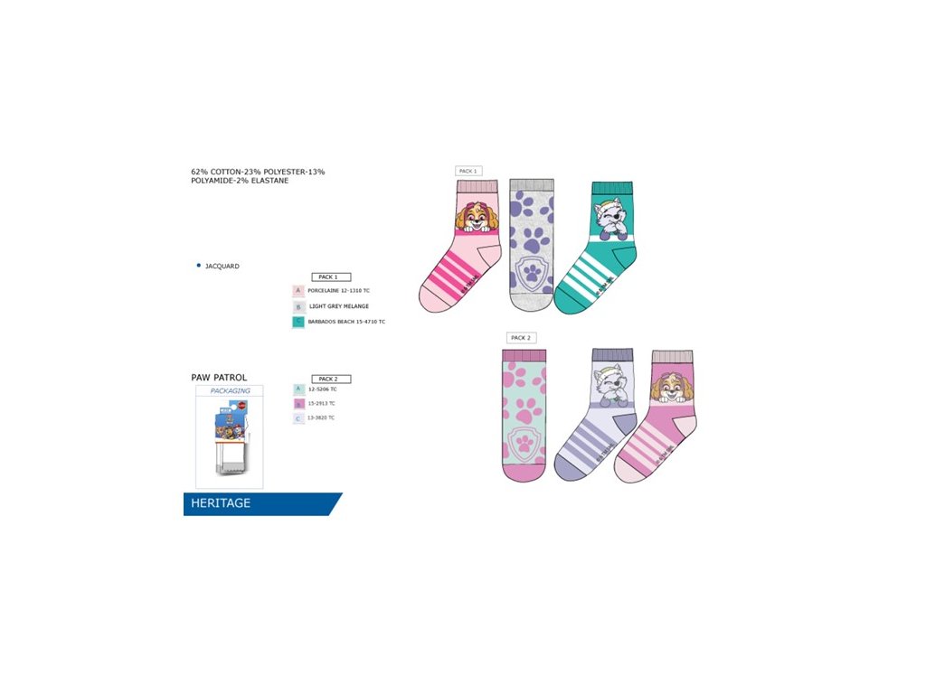 Dívčí ponožky Tlapková Patrola - 3 páry, vel. 27-30