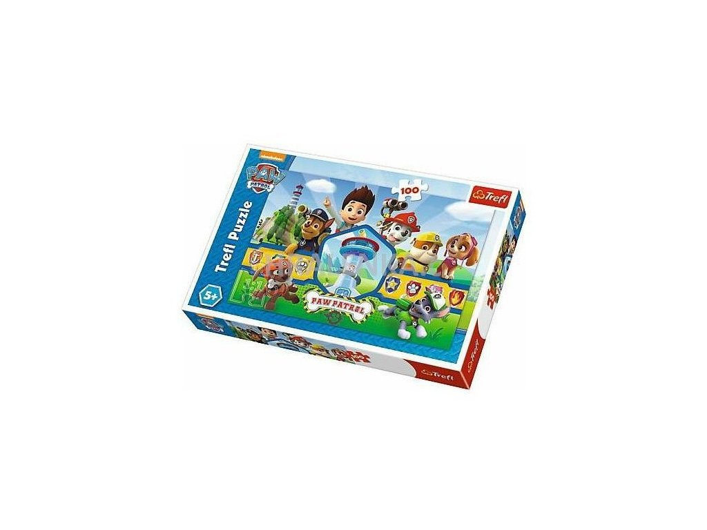 Puzzle s motivem Tlapková Patrola, 100 dílků, rozměry složeného obrázku 41 x 27,5 cm, rozměry balení 19 x 28,5 x 4 cm.
