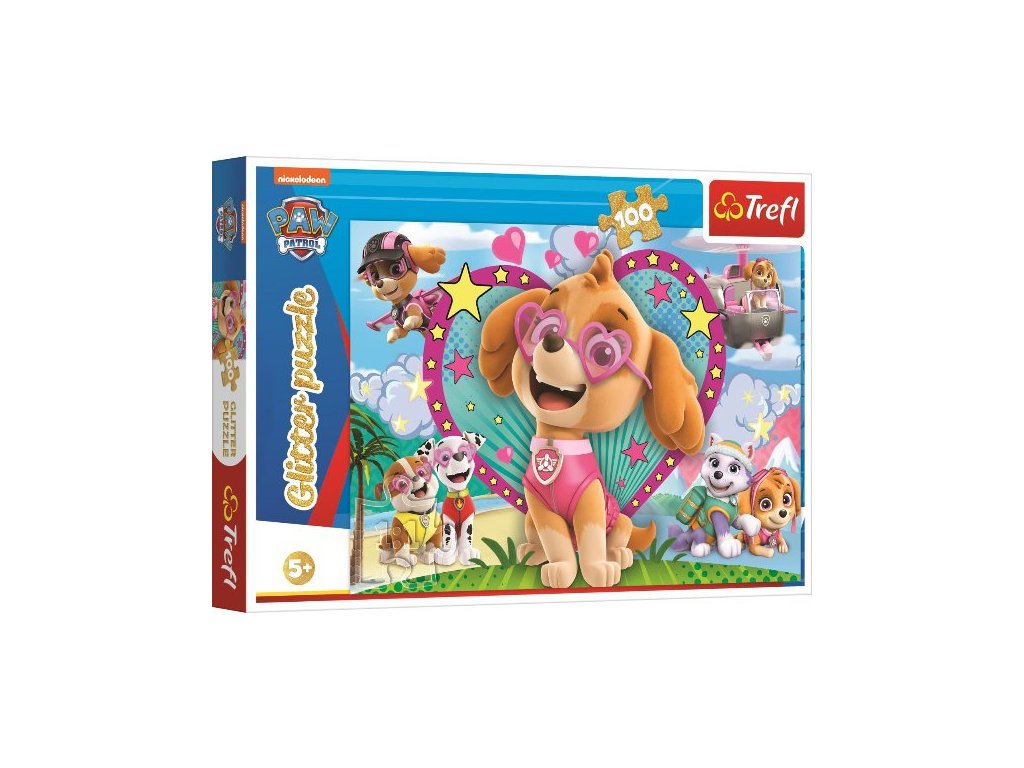Třpytivé puzzle se 100 dílky s motivem oblíbených hrdinů Tlapkové patroly.